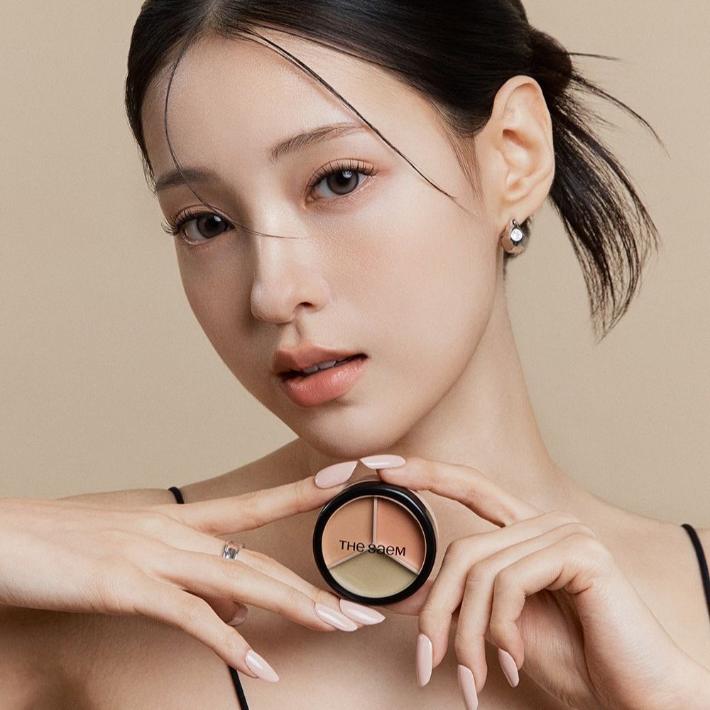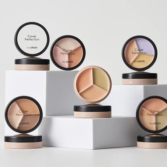 کانسیلر چندکاره سه رنگی از برند The Saem (ساِم)، مناسب برای پوشش مشکلات پوستی مثل لکها، قرمزی و تیرگیهای زیر چشم، با بافت نرم و قابل ترکیب.